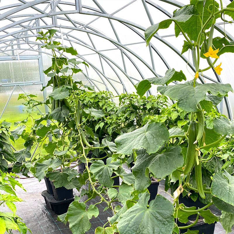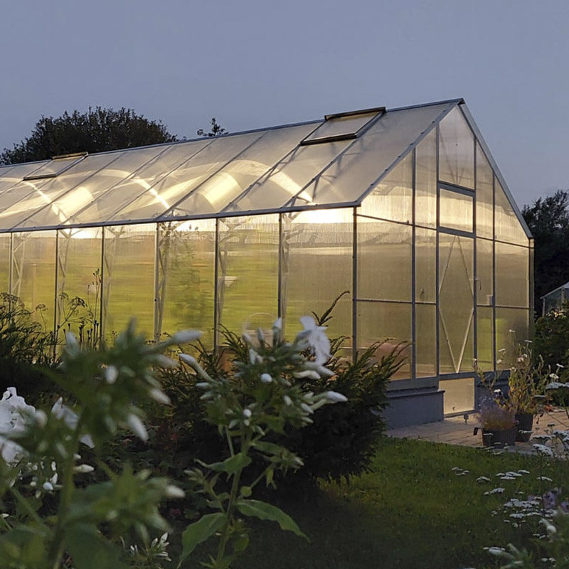- Kasvihuoneen molemmissa päissä on automaattinen päätyilmaikkuna SmartVentor