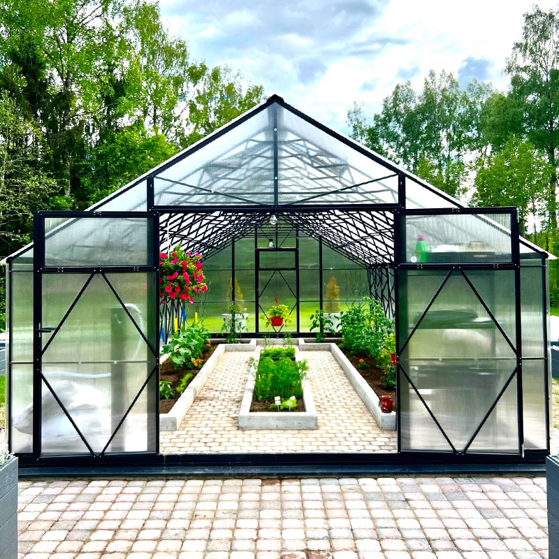 - Kasvihuoneen molemmissa päissä on 88cm leveä ovi, ovessa ilmaikkuna